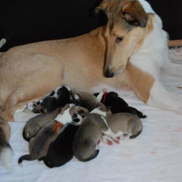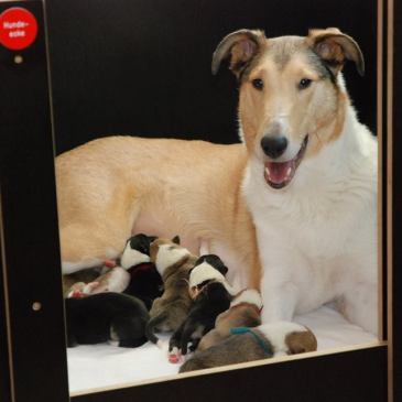 26. Oktober 2015 “Und jedem Anfang wohnt ein Zauber inne, Der uns beschützt und der uns hilft, zu leben.” (Hesse) We are delighted to announce the birth of nine puppies today. 3/1 tricolor, 2/3 sable Sir: Törnskogens Oscar de la Renta – Solomon Dam: Turella´s Queenie – Rosa with Jolanda Berkelmans